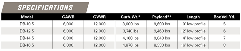 **Payload is calculated on 10% transfer weight on bumper hitch when weight is distributed evenly.