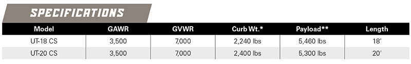 **Payload is calculated on 10% transfer weight on bumper hitch when weight is distributed evenly.