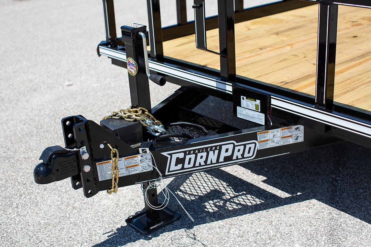 Need the type of trailer the pros use? Step up to the CornPro UTL. Made with the same 24” on center cross-members rolling on the same high-quality torsion axles and radial tires, the UTL adds 3-inches of fender-to-fender space with four optional lengths. Solid, kiln-dried flooring and a tread plate ramps make this trailer ready to haul your largest lawn equipment.
